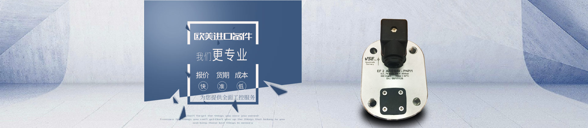 上海維特銳實業發展有限公司主要經營歐洲、美國、日本等廠家的工控機電設備、儀器儀表、泵閥、電線電纜及各種自動化產品的備品配件。經過長年的業務經驗,積累了豐富的信息資源,使公司擁有了完善的技術查詢系統及優良的技術人員,能保證為客戶作出Z快、Z準確的回復。我們重點服務的行業有:鋼鐵、礦山、港口、船舶、電力、電子、能源、化工、玻璃陶瓷、造紙、釀酒、水泥、建筑、制藥、卷煙、機床、醫療器械、環保等。隨著國內經濟的不斷發展,越來越多的進口設備被引進,多種多樣的自控元件被應用使我國的經濟有了飛速的發展,但是設備...